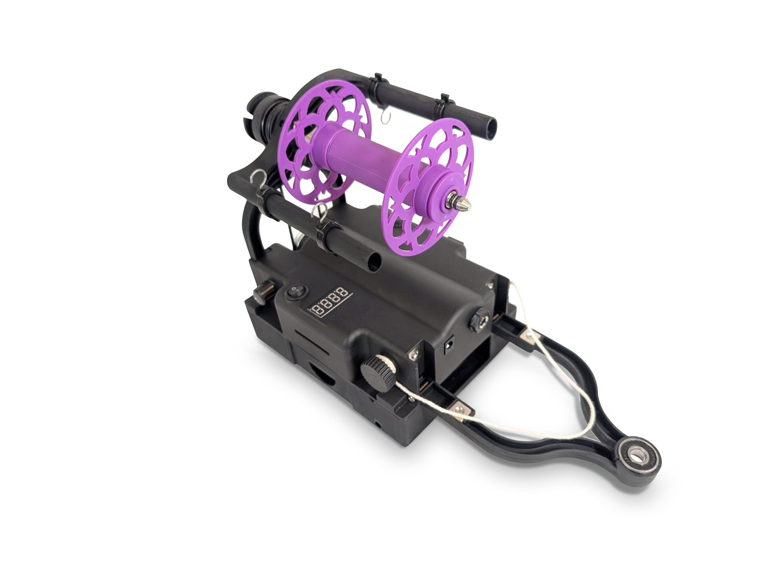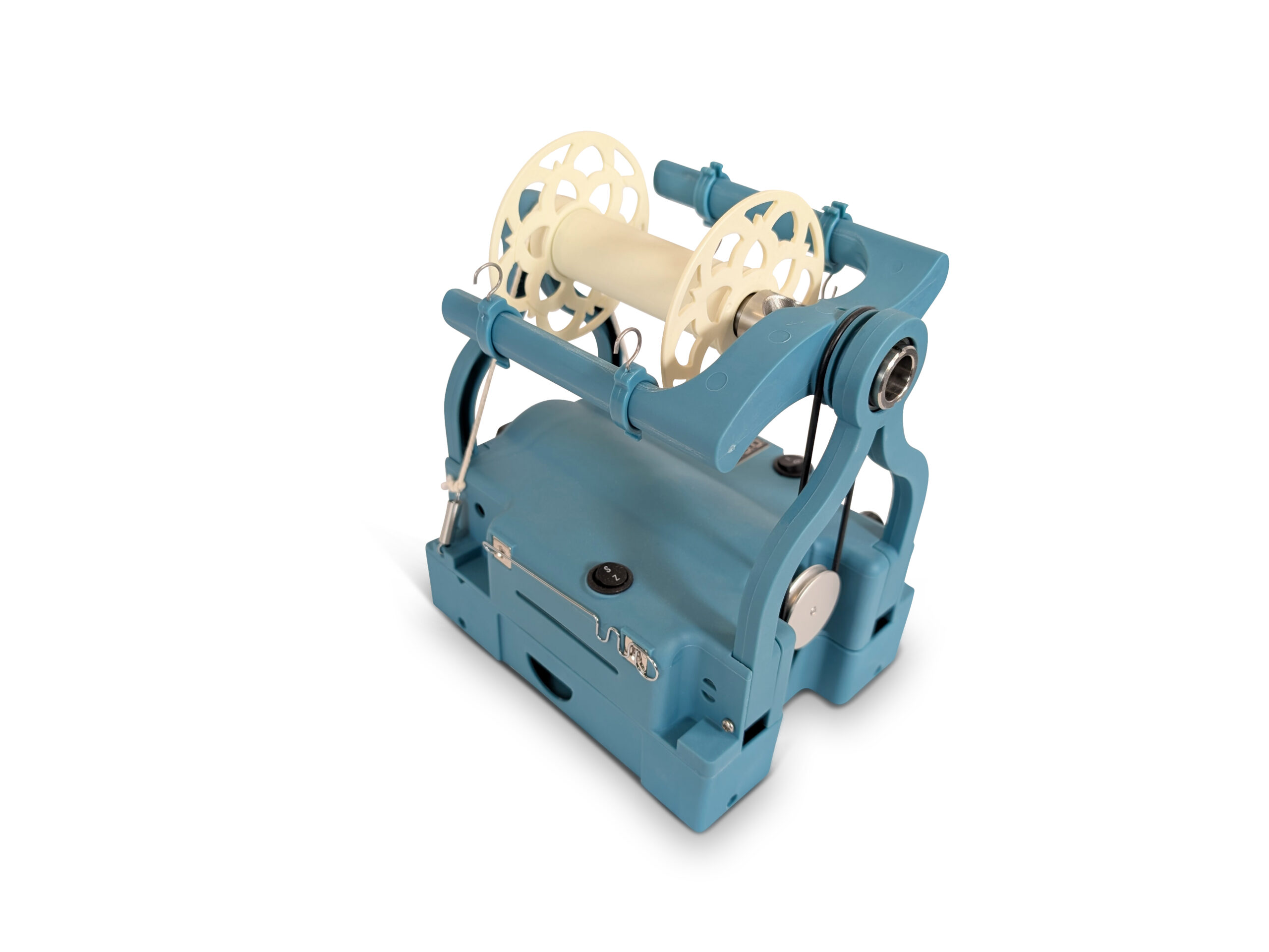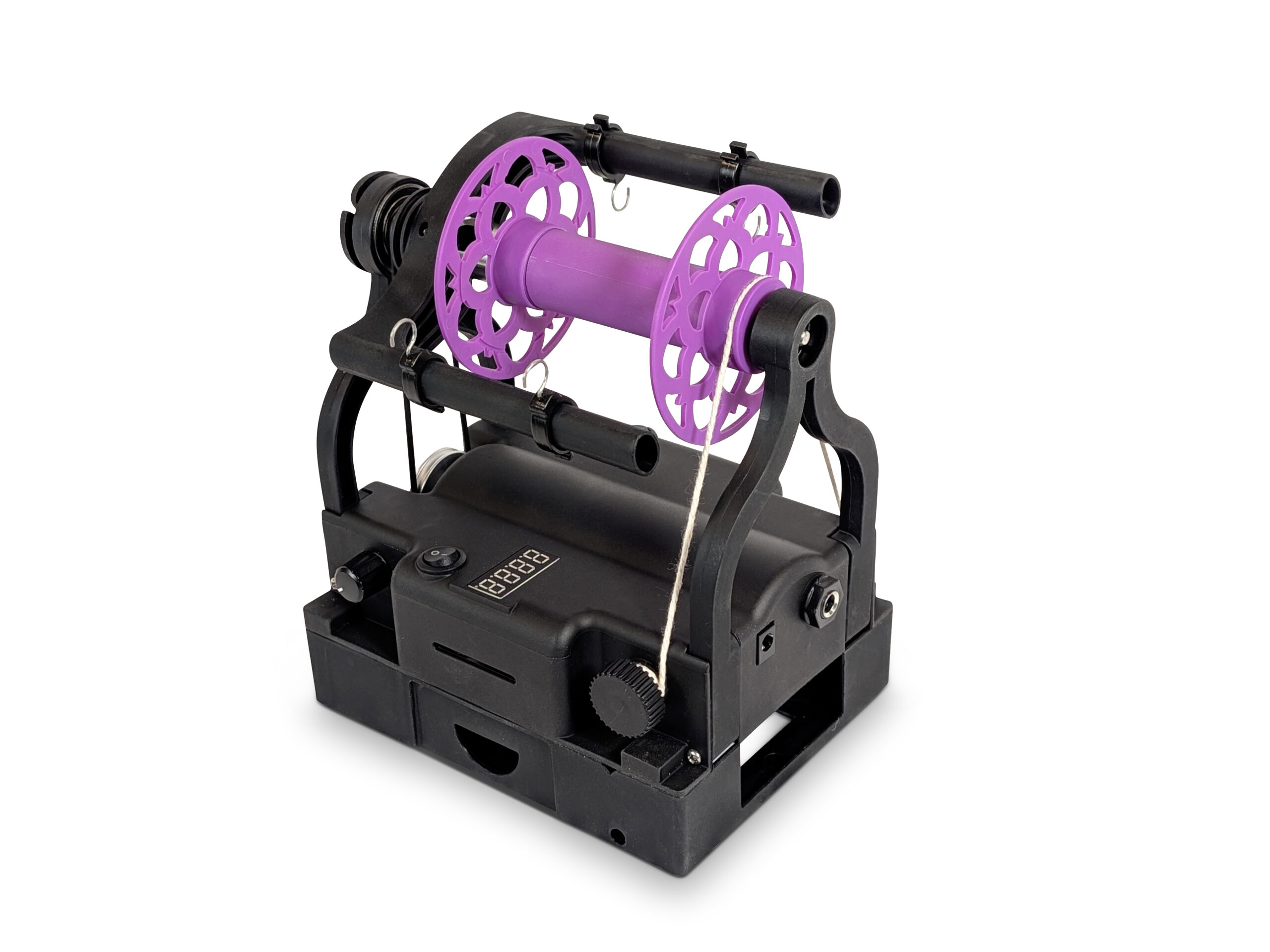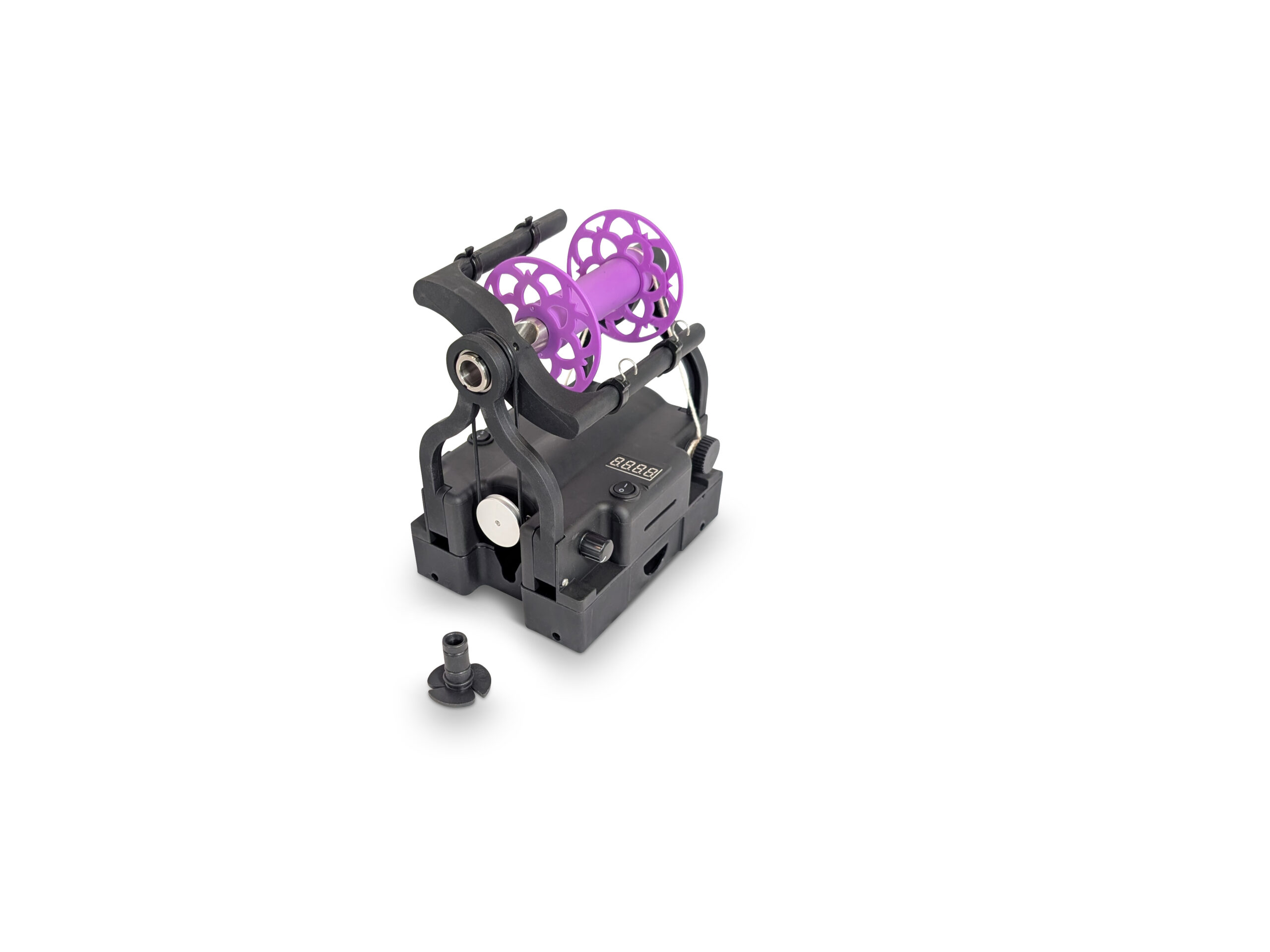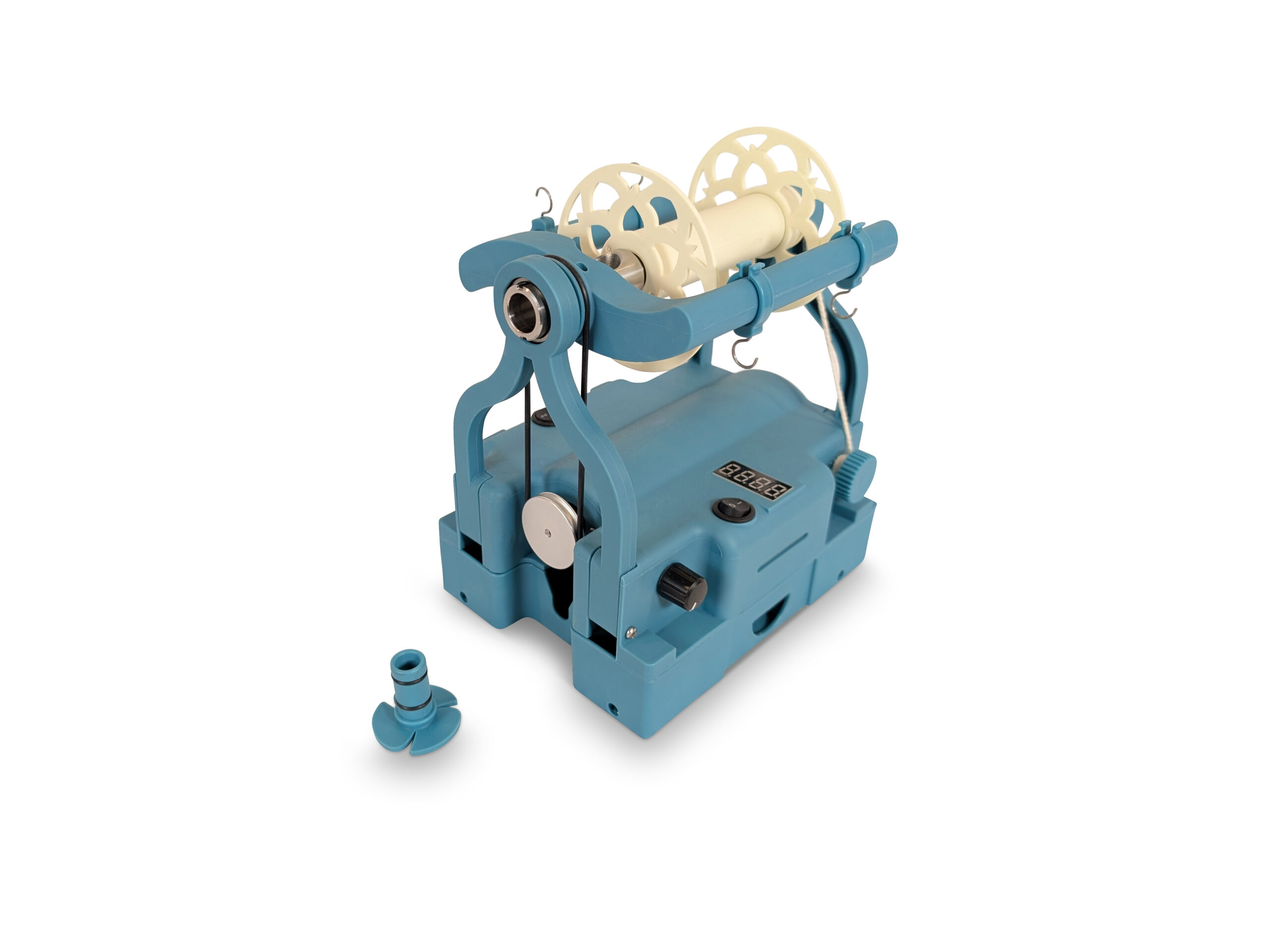 Compact folding eSpinner designed for fast bobbin changes, travel, and storage. Lightweight, quiet, and powerful. Uses 4 oz bobbins.
