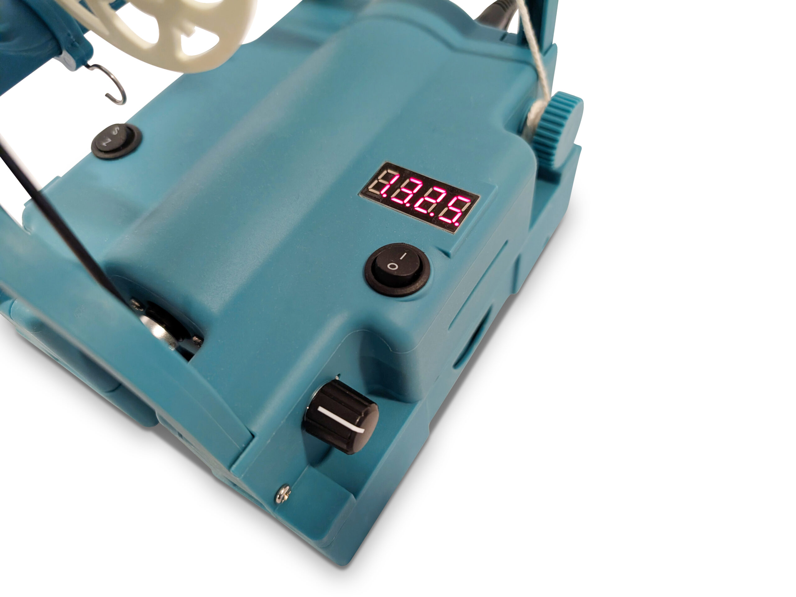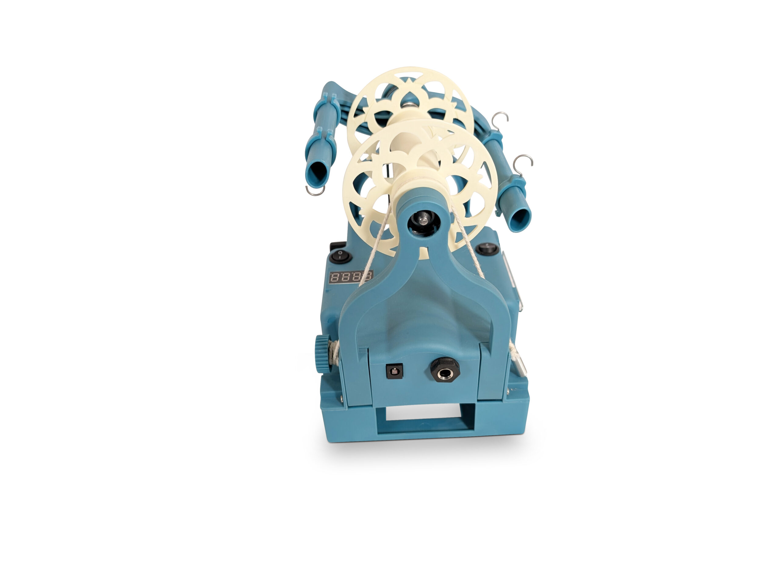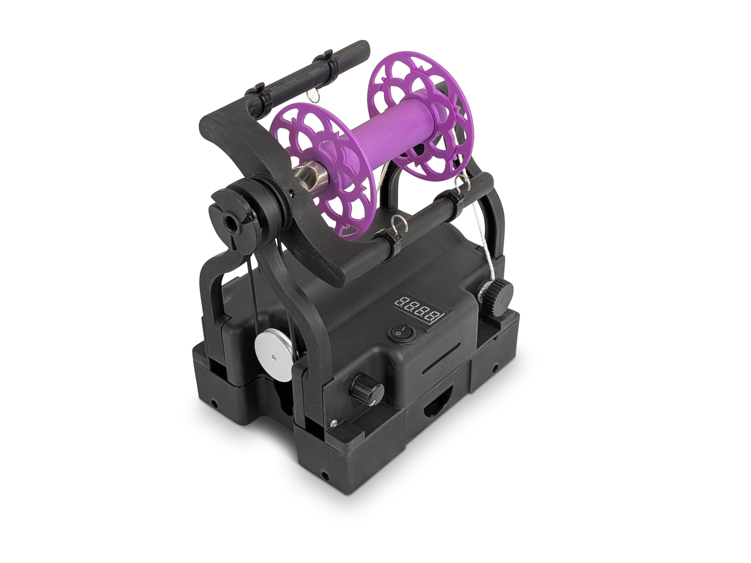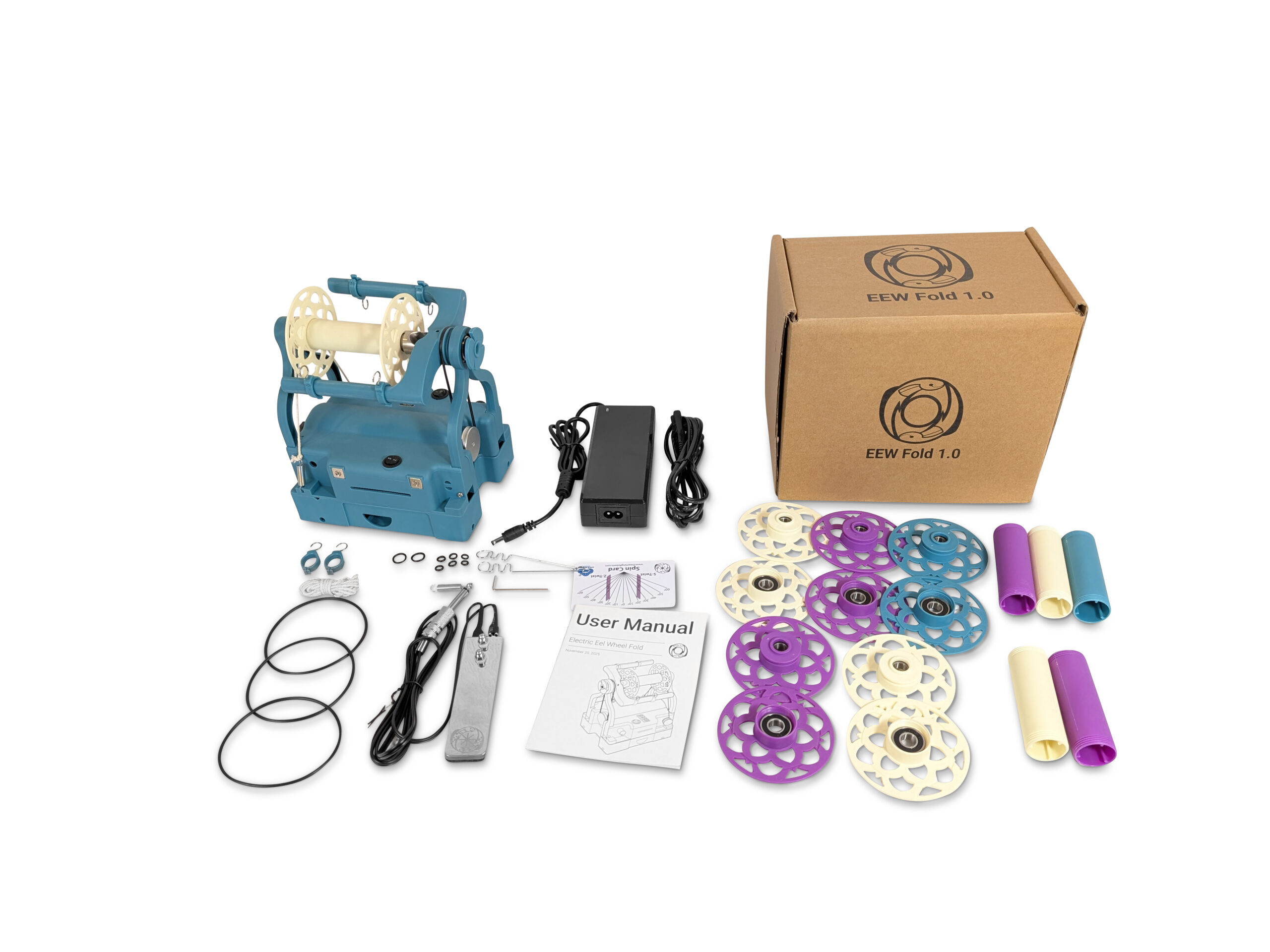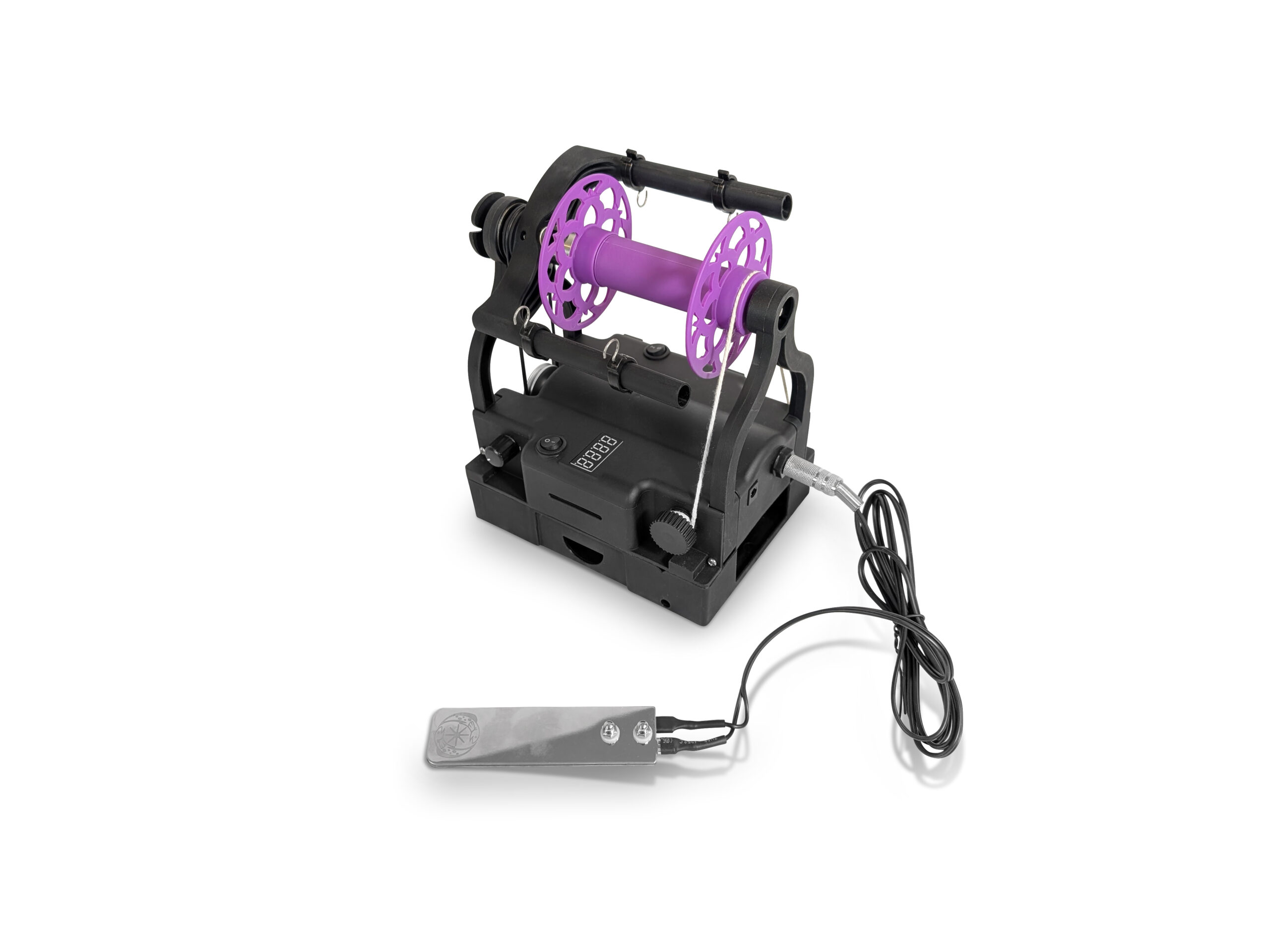 Compact folding eSpinner designed for fast bobbin changes, travel, and storage. Lightweight, quiet, and powerful. Uses 4 oz bobbins.